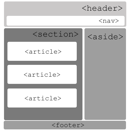 در طراحی سایت با html5 ساختار کدها عوض شده و از حالت منحصر به div بودن خارج شده و استفاده بیش از حد از div را بی نیاز میکند . نحوه قرار گیری تگ ها و ویژگی هاMی صفحه در html5 را در شکل زیر میتوانید مشاهده کنید